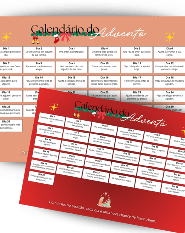 O guia completo para 25 dias até o Natal, com atividades em família, orações e mensagens. Prepara o coração da criança e da família para a vinda de Jesus.